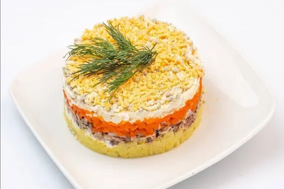 Окунь красный, Картофель, Морковь, Яйца куриные, Лук зеленый, Майонез МЖК, Перец черный молотый, Соль